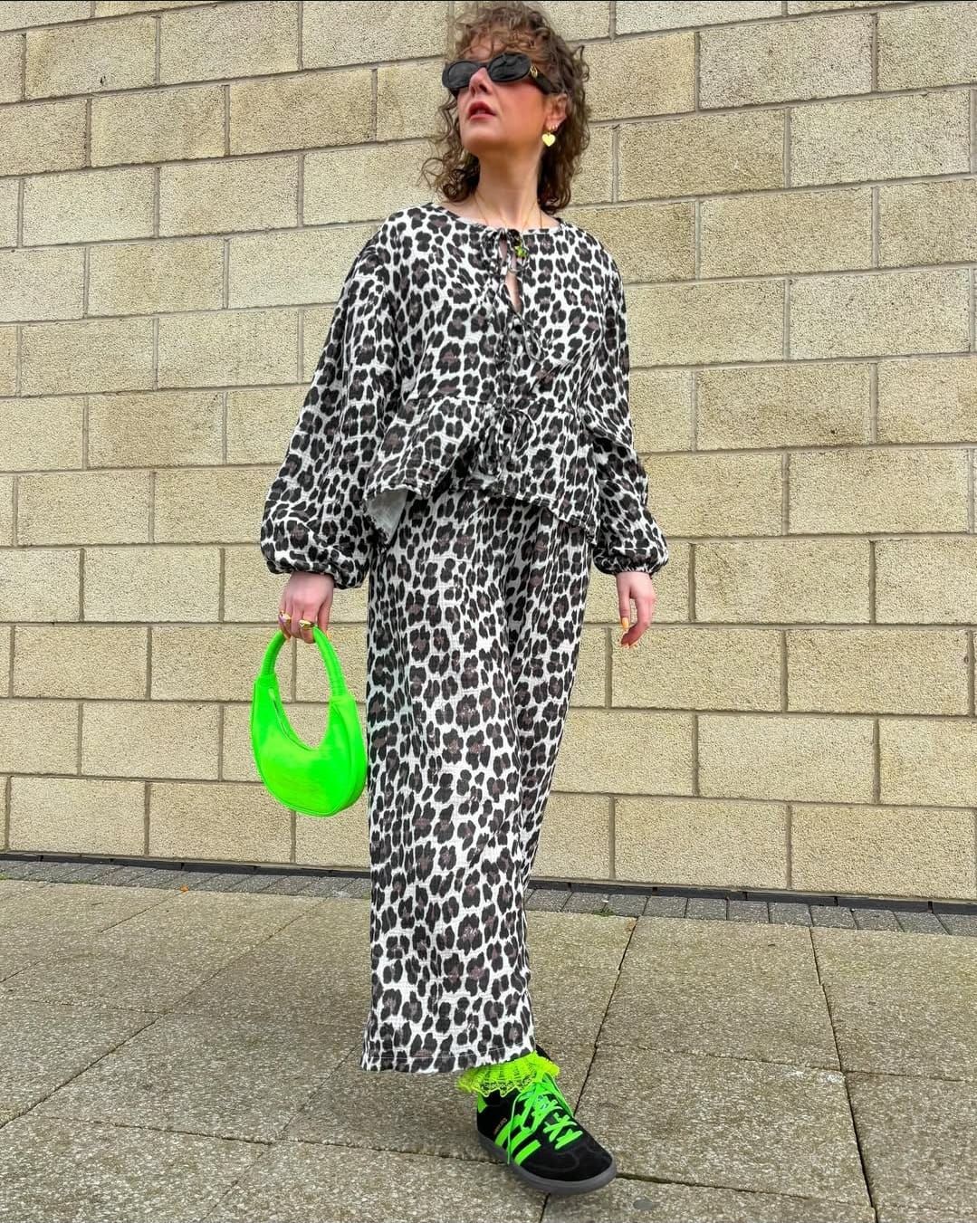 The eye needs a place to land. Without a focal point, it keeps searching, and that is when an outfit starts to feel busy or overwhelming. The focal point could be a dramatic sleeve, a bold shoe, a cinched waist, or even a strong contrast in color.